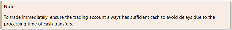 Any money transfer to your end-customer's Saxo Bank account must only come from an account that we can confirm is in the name of the same person (or entity) as your end-customer's Saxo Bank account. When we receive the funds, we check whether we can confirm that they come from the same person or entity. If this is the case, the amount will be credited to your end-customer's Saxo Bank account.